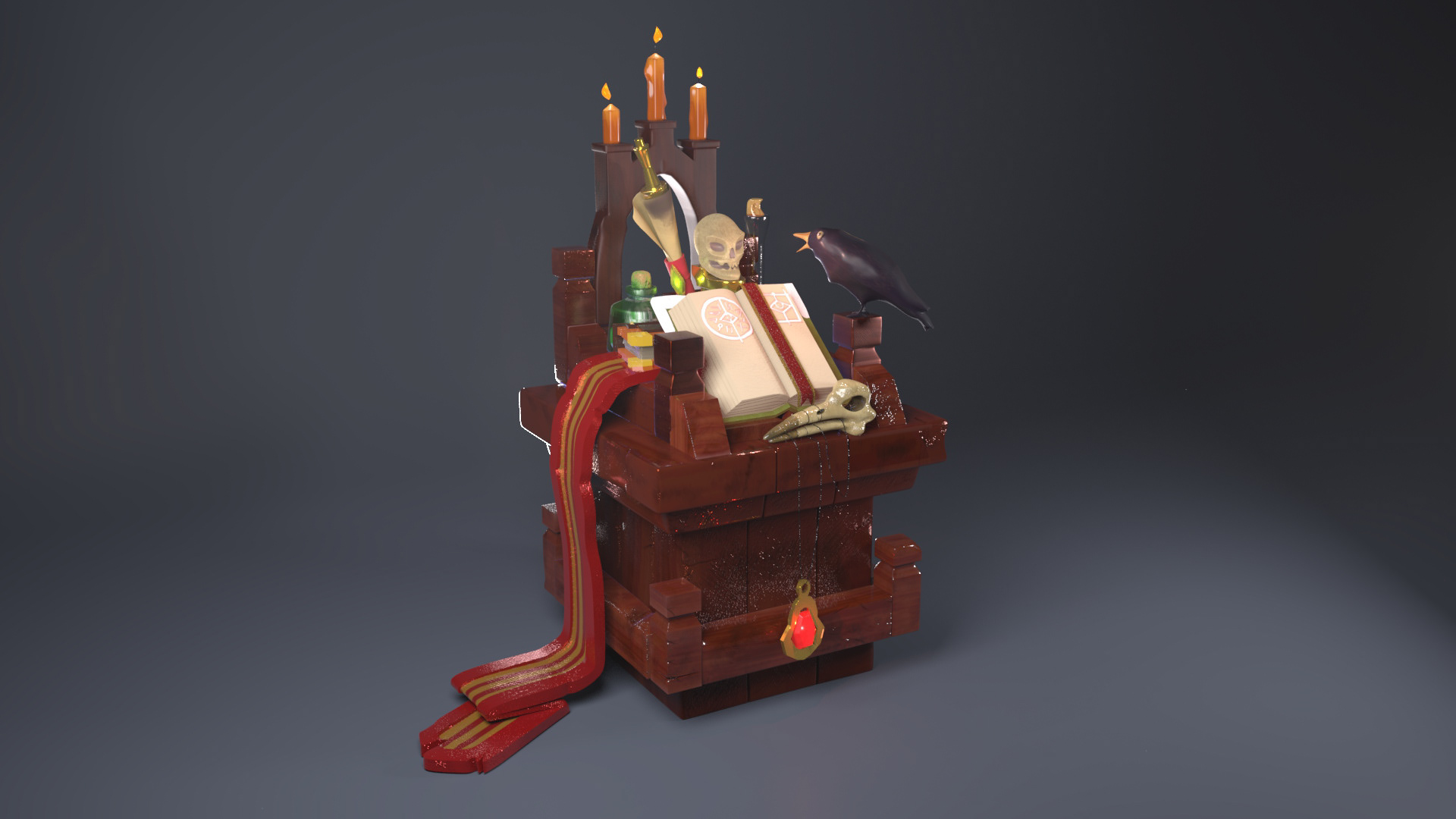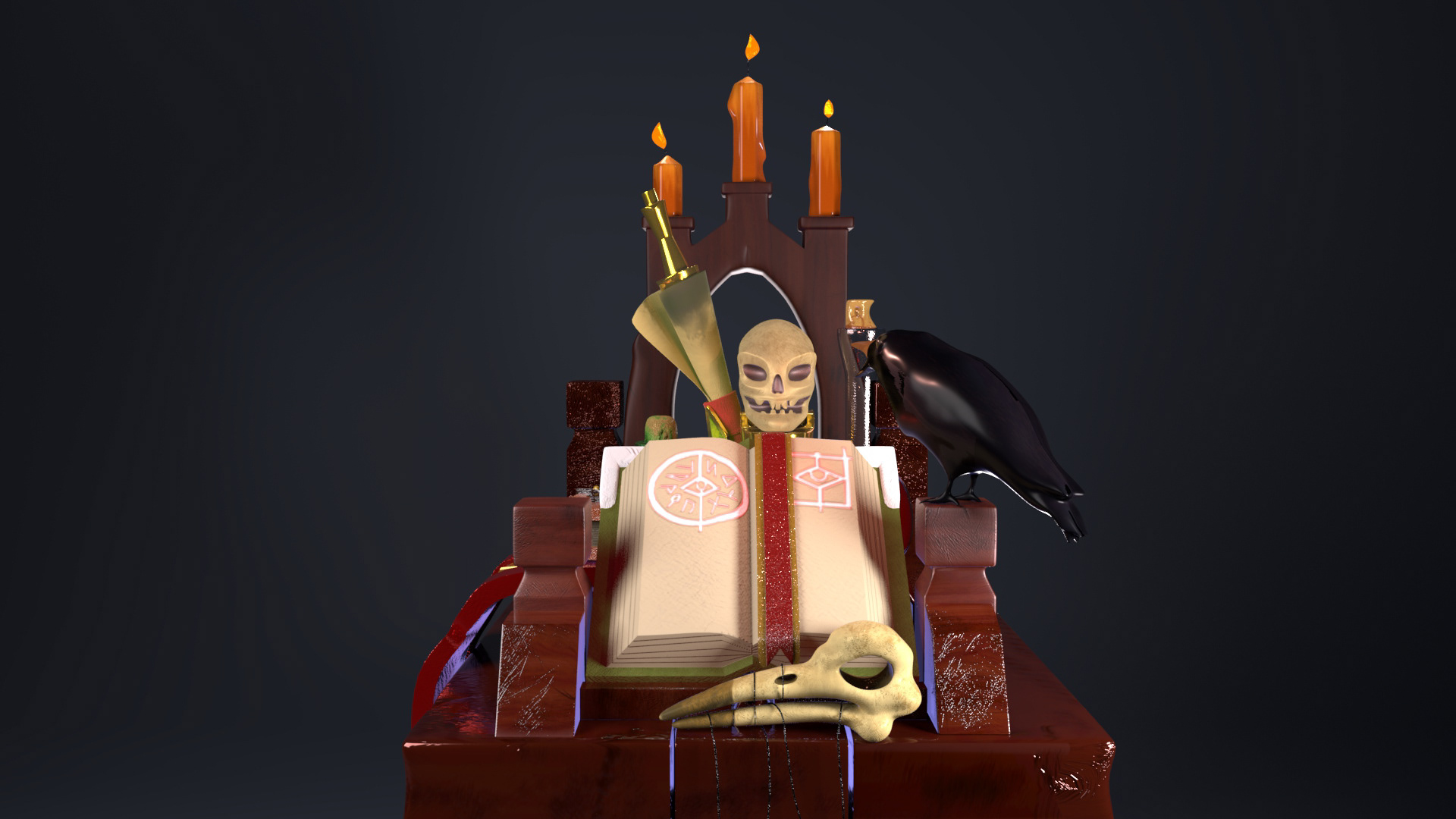 With the Magic Alter I completely modeled everything in Maya, with the exception of the Human skull and Raven in ZBrush, which were both retopologized Maya.